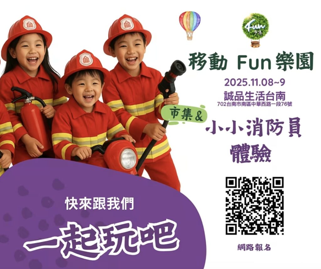 台南親子好去處!「移動Fun樂園市集」周末登場,小小消防員體驗等你來挑戰!